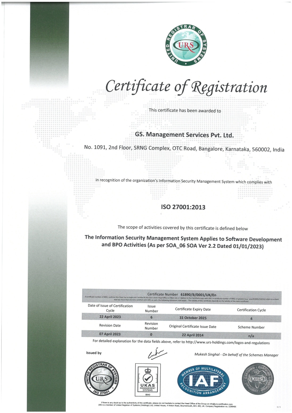 ISO Certificate 27001-2013