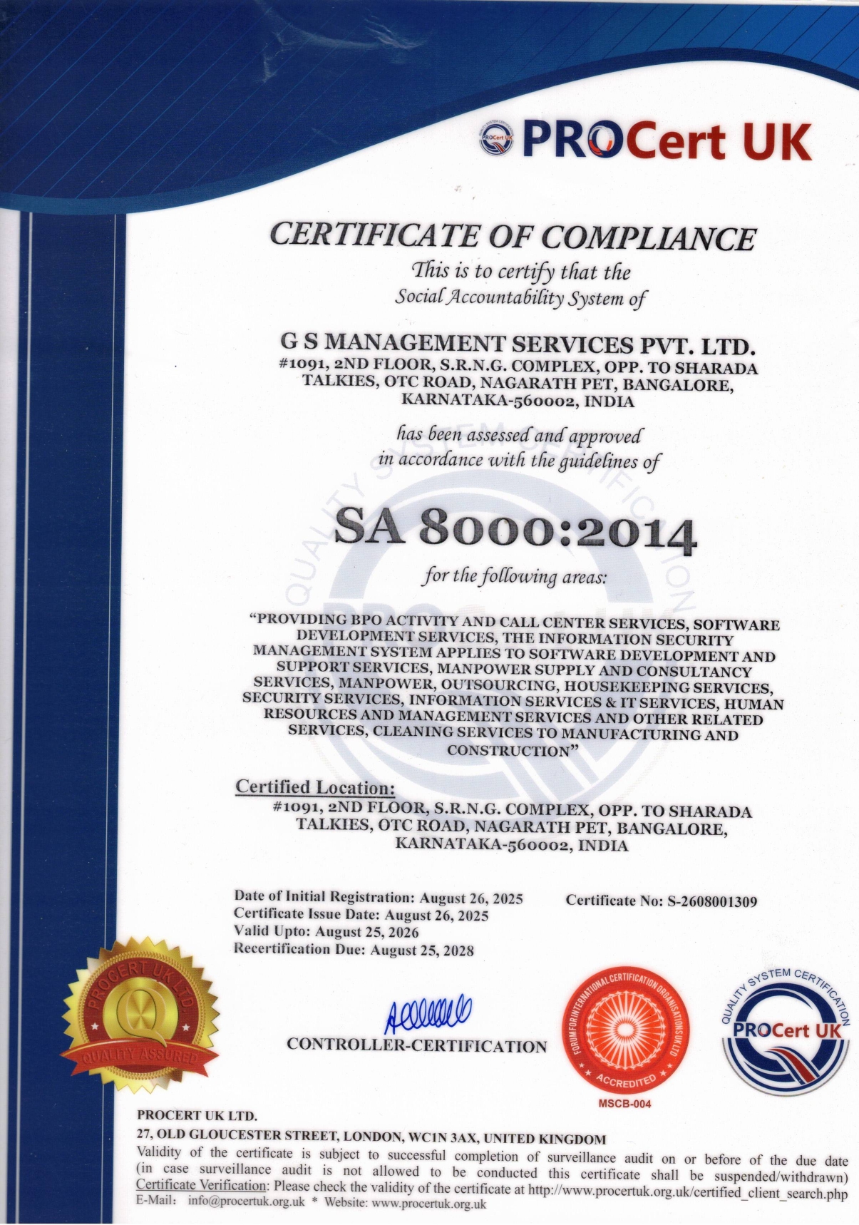 ISO Certificate SA 8000-2014