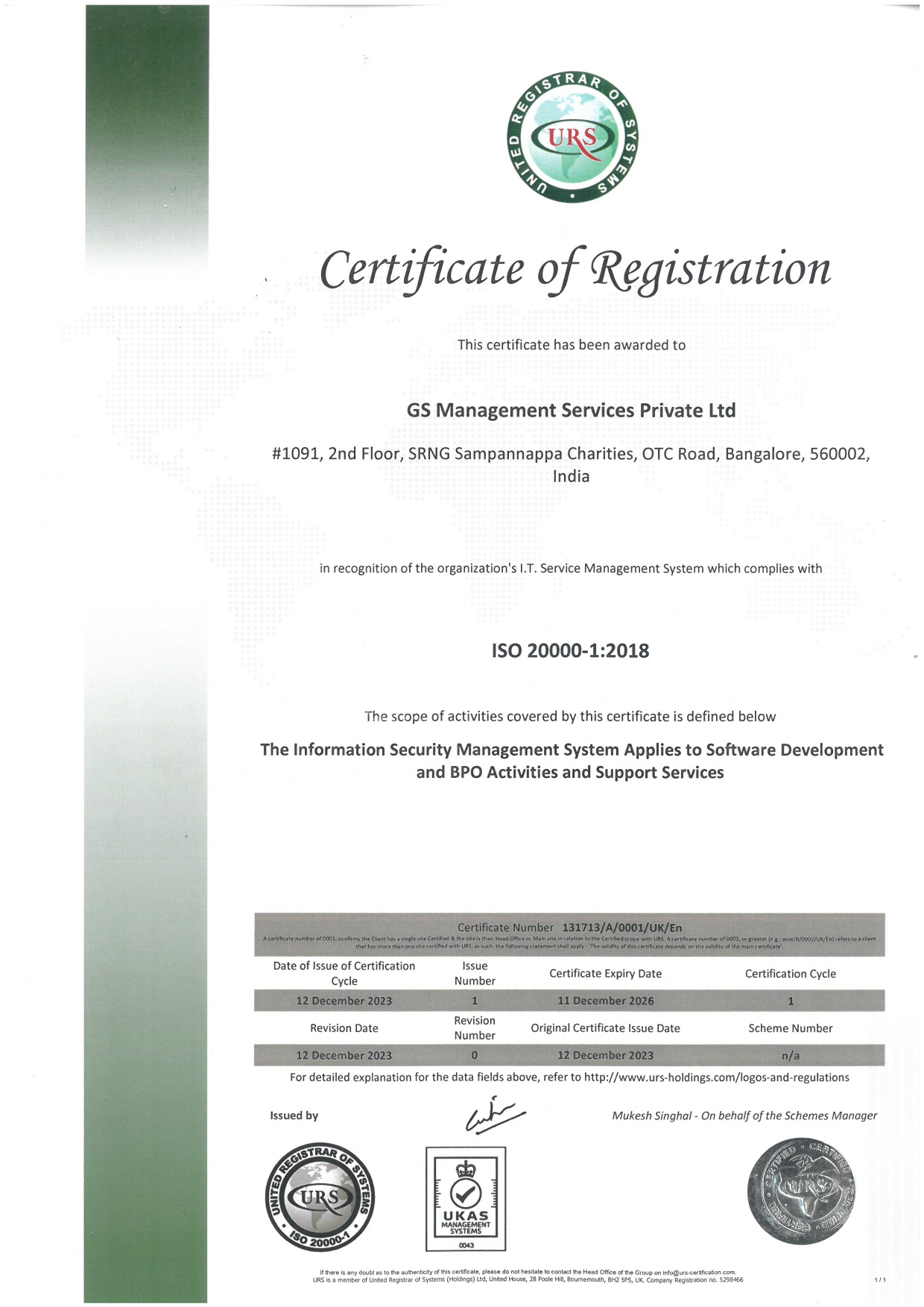 ISO Certificate 20000-1 2018